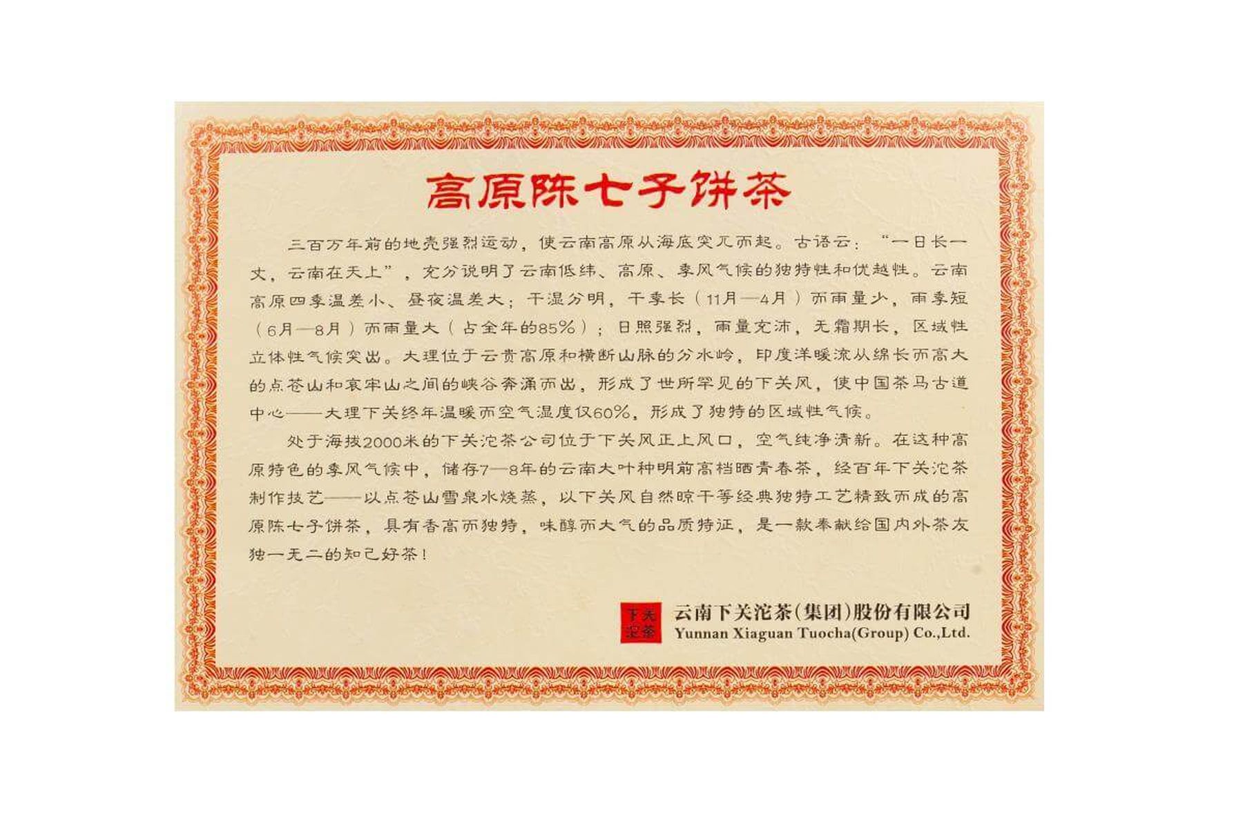 Производитель: завод Сягуань (云南下关沱茶股份有限公司, yúnnán xià guān tuóchá gǔfèn yǒuxiàn gōngsī).