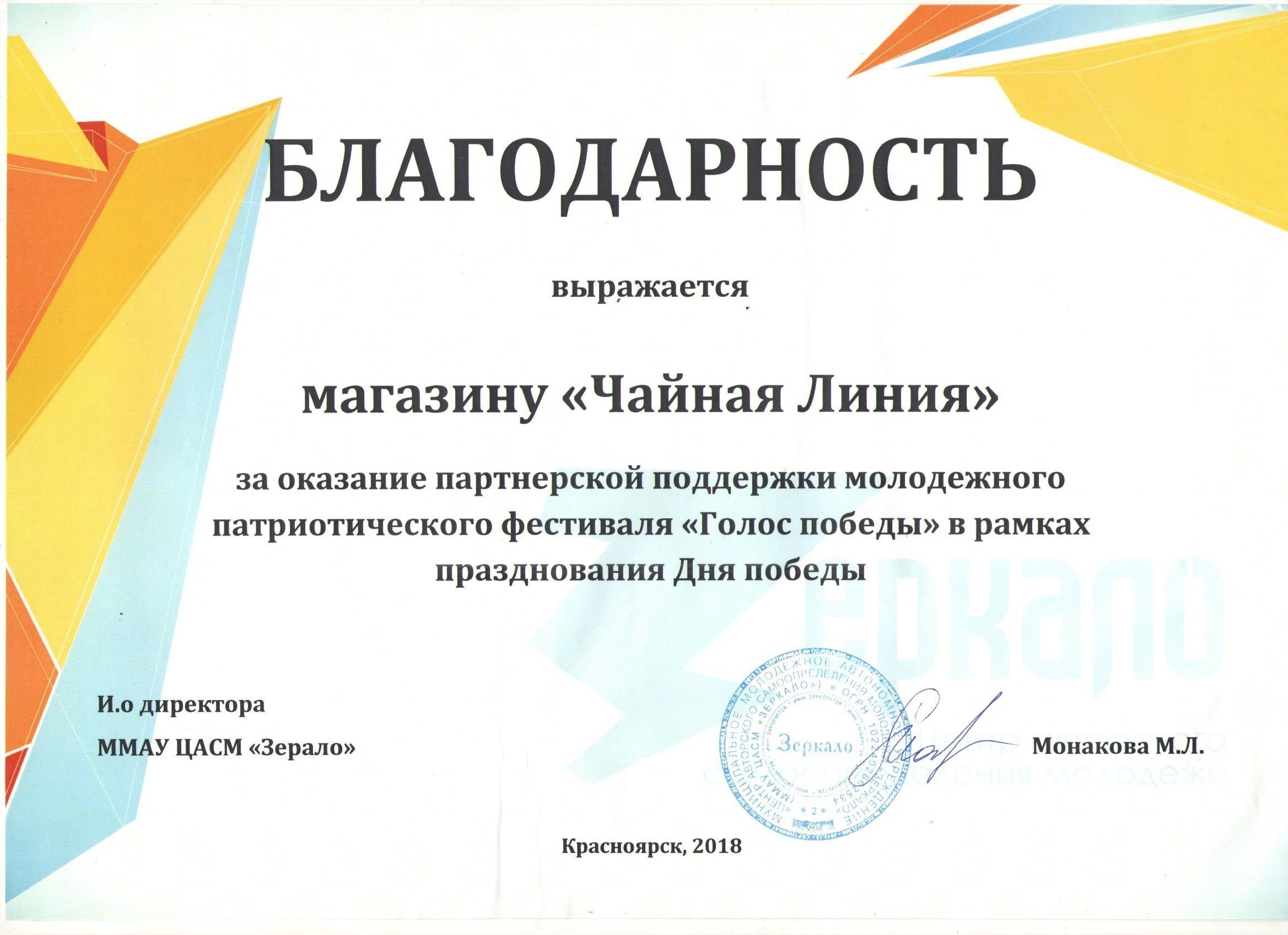 Благодарственные письма