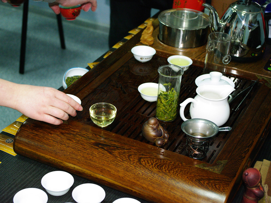 Потчивать наших друзей мы начали с Лун Цзина, что и неудивительно – ведь название этого чая переводится «колодец дракона»! Параллельно мы рассказывали самую, пожалуй, знаменитую легенду о появлении на свет этого прекрасного зеленого чая..
